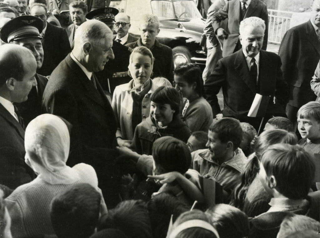 Le général de Gaulle entouré d’enfants à Pringy, 8 octobre 1960.